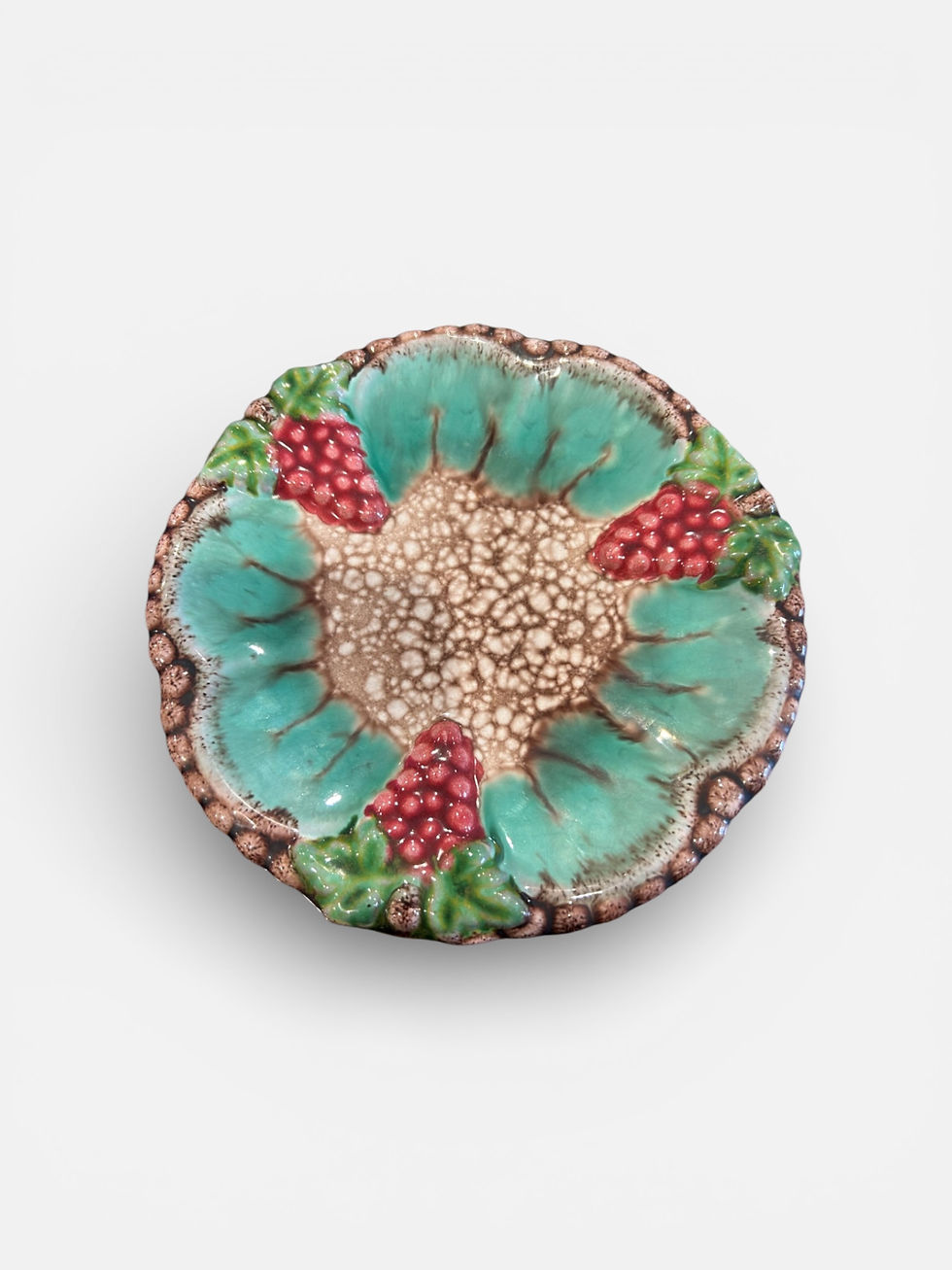 Vintage Majolica Ceramic Begonia Leaf Dessert Plate 7 1/2"
