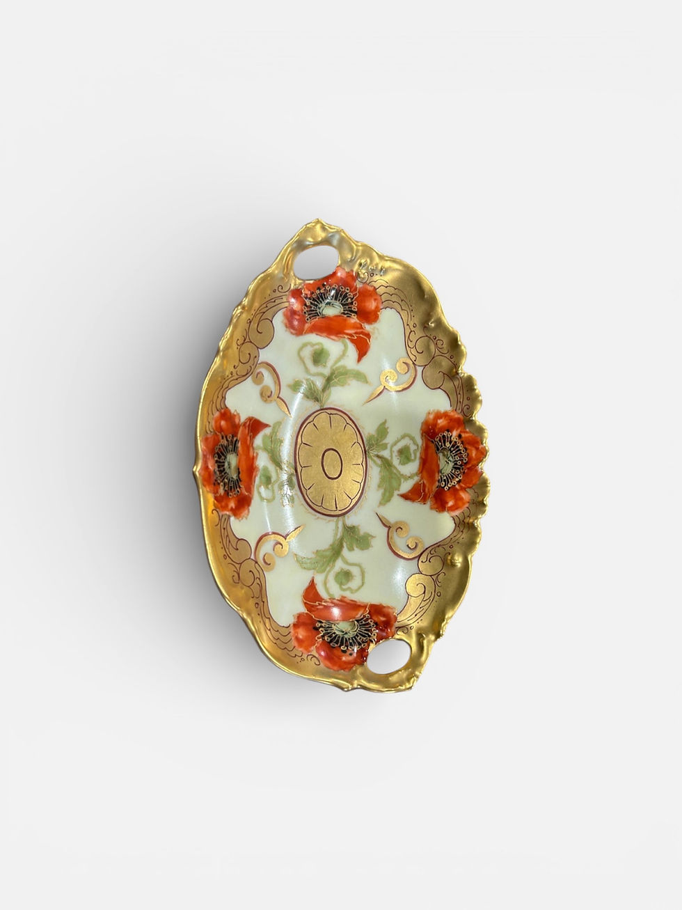 Vintage Hand Painted Limoges Pickard Porcelain Gold With Poppies Dish